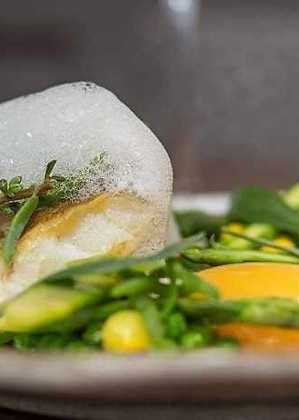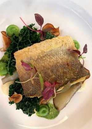Locally Landed Hake chestnut puree, Trill Farm fennel, polenta, local shellfish sauce GF